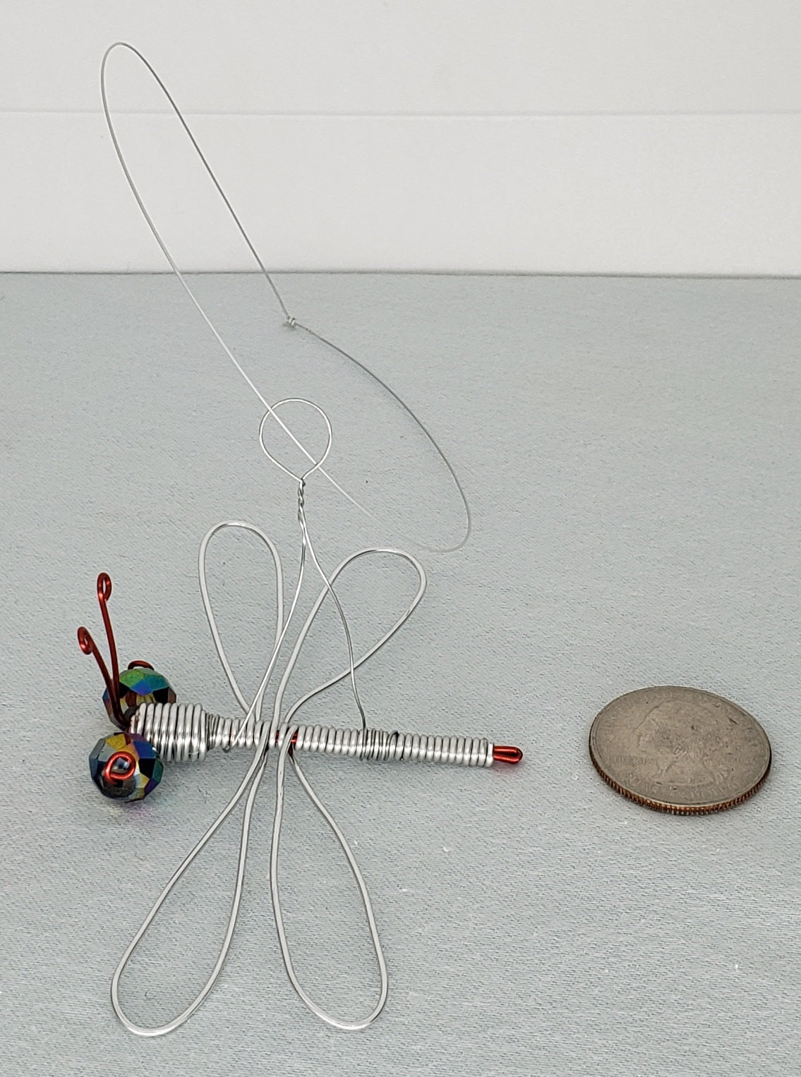 This fun dragonfly ornament features silver and red wire and faceted iridescent eyes. Use the wire hanger to suspend it from a xmas tree as a totally unique ornament, and then use it year-round as a conversation piece. So many possibilities for just $15!