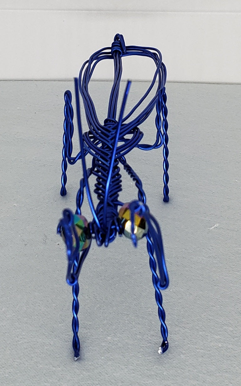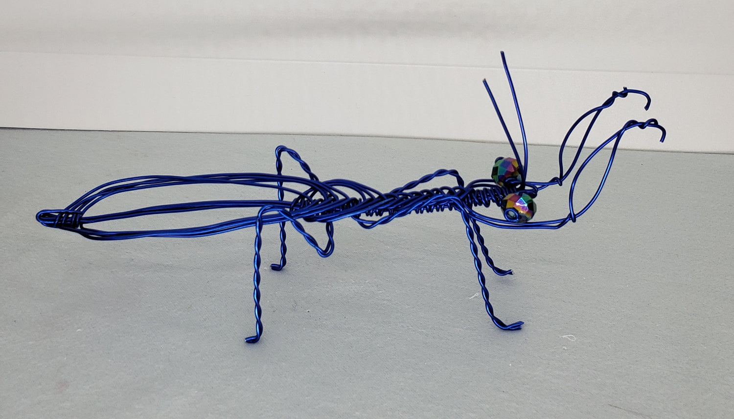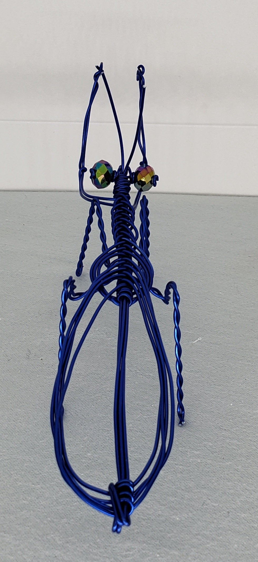 This awesome wire sculpture features blue wire and faceted iridescent eyes. At approximately 7' long, it won't take up much space, but will add a unique touch wherever you choose to put it. Claim it today before somebody else does! At just $30, it won't last long!