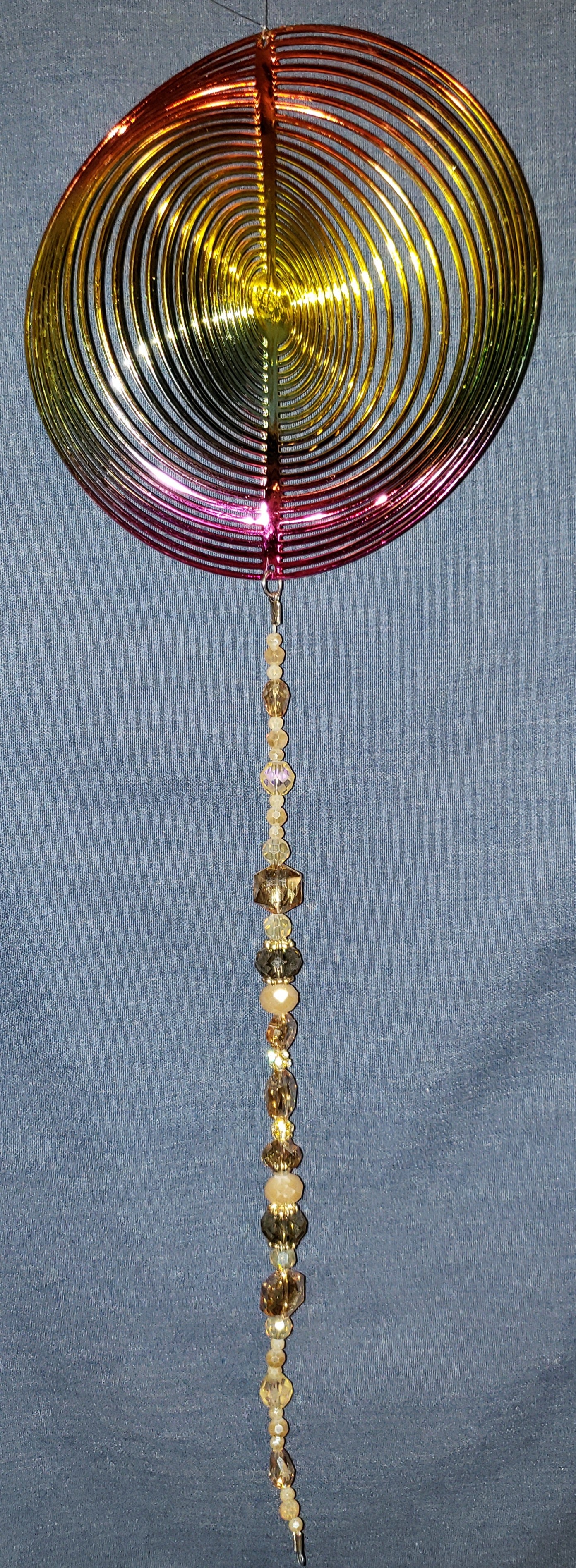 Featuring a rainbow colored top and handmade tail, this spinner will add a bright, lovely touch to any space. The tail is lovingly made from upcycled beads, mostly from old jewelry, so there will never be another one like it! Contact us today to claim this one-of-a-kind work of art for yourself, or as a gift that is sure to make the recipient smile for years to come!