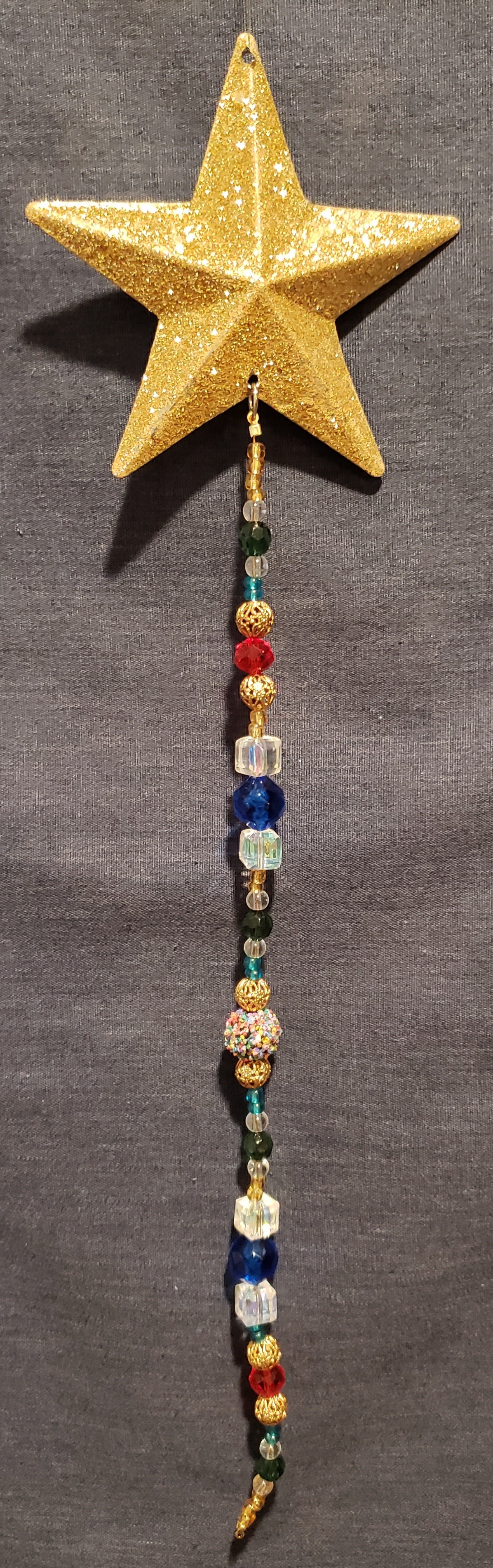 Made just in time for the holidays, this one-of-a-kind spinner will add a beautiful holiday touch to any space! The tail is lovingly handmade from upcycled beads, mostly from old jewelry, so there will never be another one like it! Contact us today to claim this one-of-a-kind work of art for yourself, or as a completely unique holiday gift that will harvest smiles for years to come!