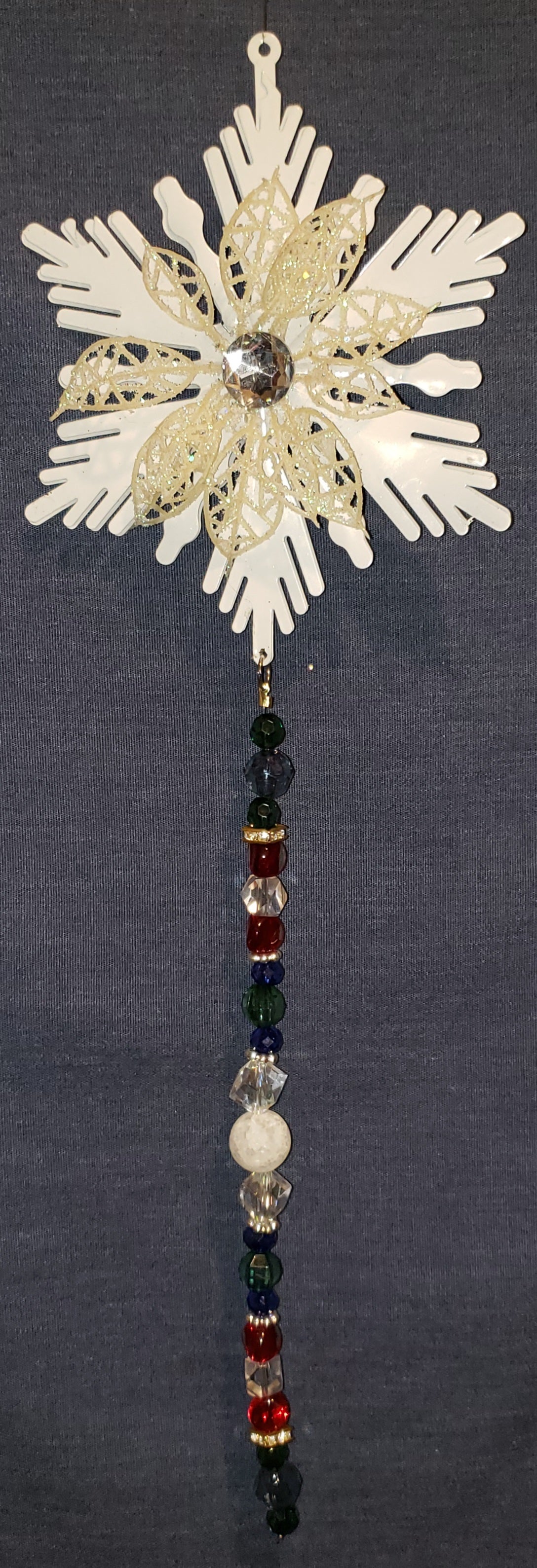 Made just in time for the holidays, this one-of-a-kind spinner will add a beautiful holiday touch to any space! The tail is lovingly handmade from upcycled beads, mostly from old jewelry, so there will never be another one like it! Contact us today to claim this one-of-a-kind work of art for yourself, or as a completely unique holiday gift that will harvest smiles for years to come!